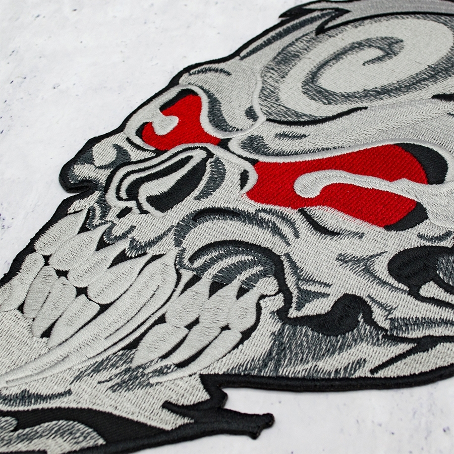 Нашивка термо Череп демона з червоними очима наспинна (thps-081) Розмір – ширина 16 см, висота 27 см