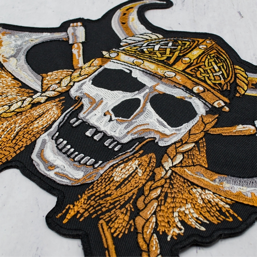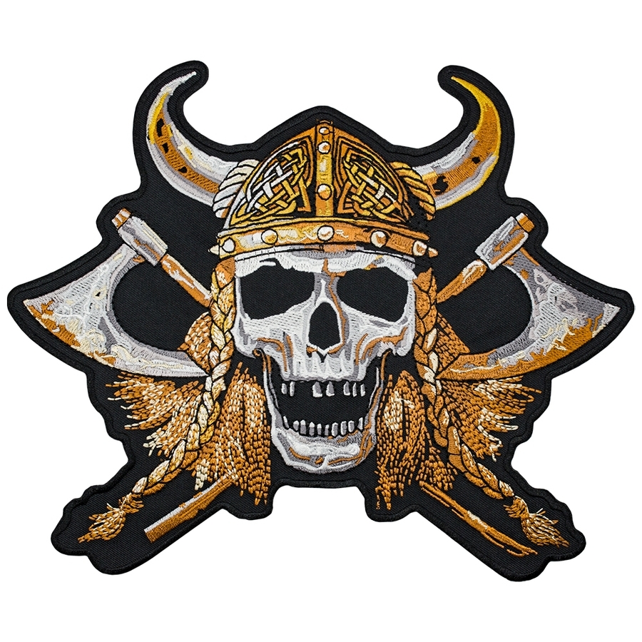 Нашивка термо Череп вікінга в шоломі та з сокирами наспинна (thps-070) Розмір – ширина 24 см, висота 20,5 см
