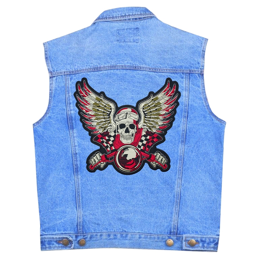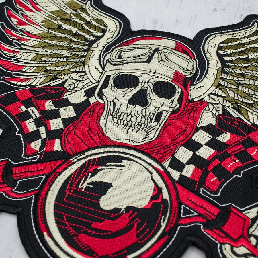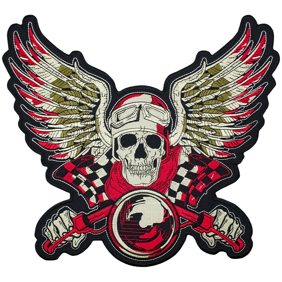 Нашивка термо Скелет мотогонник з ангельськими крилами наспинна (thps-090)