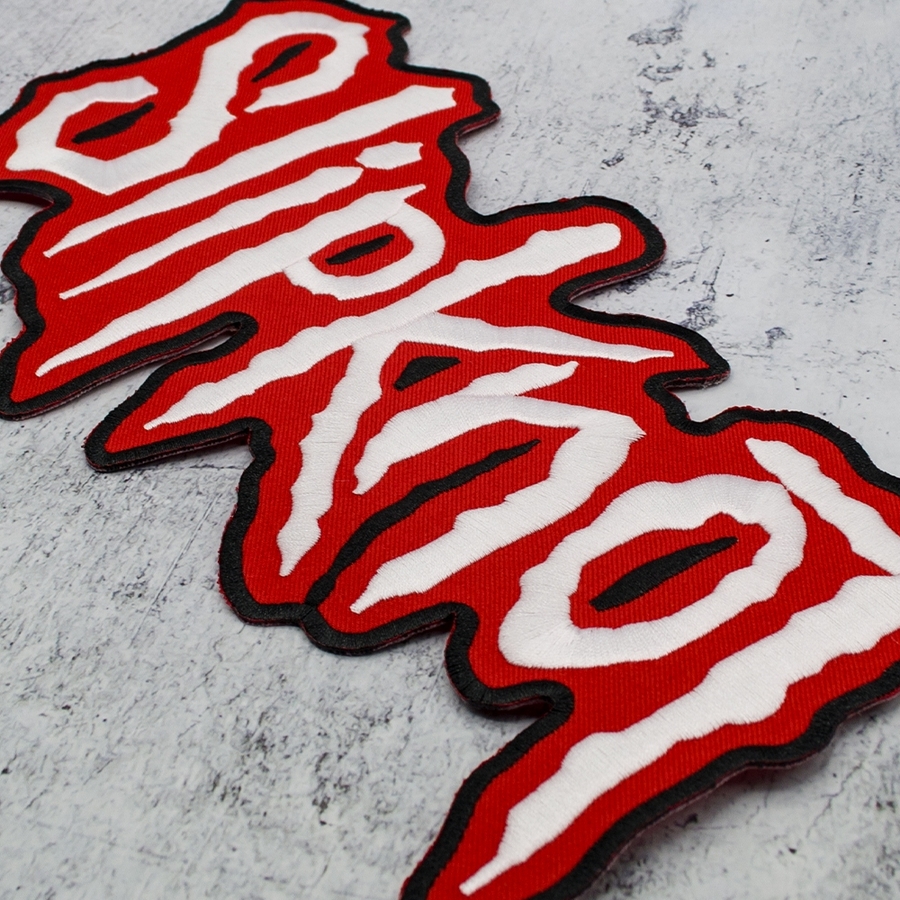 Нашивка термо Slipknot (red-white logo) наспинна (thps-031) Розмір – ширина 29.5 см, висота 11.5 см