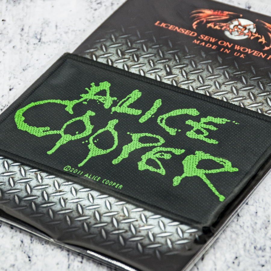 Нашивка ткана ALICE COOPER - LOGO (ofp-359) Цей товар є офіційним ліцензованим мерчем. Ткана нашивка високої якості та деталізації. Краї нашивки оброблені оверлоком, завдяки чому виріб виглядає максимально акуратним. Нашивка пришивна. При необхідності до нашивки можете пришити липучку, щоб закріпити її на одязі, рюкзаку і т.д. там, де вже є місце під подібні аксесуари. Склад тканини: поліестер. Зроблено у Великій Британії