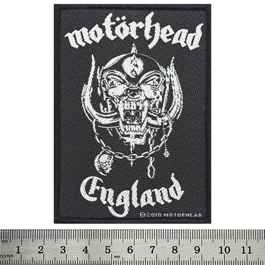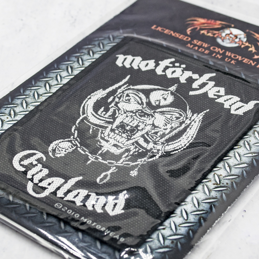 Нашивка ткана MOTORHEAD - ENGLAND (ofp-281) 10х7 см Цей товар є офіційним ліцензованим мерчем. Ткана нашивка високої якості та деталізації. Краї нашивки оброблені оверлоком, завдяки чому виріб виглядає максимально акуратним. Нашивка пришивна. При необхідності до нашивки можете пришити липучку, щоб закріпити її на одязі, рюкзаку і т.д. там, де вже є місце під подібні аксесуари. Склад тканини: поліестер. Зроблено у Великій Британії