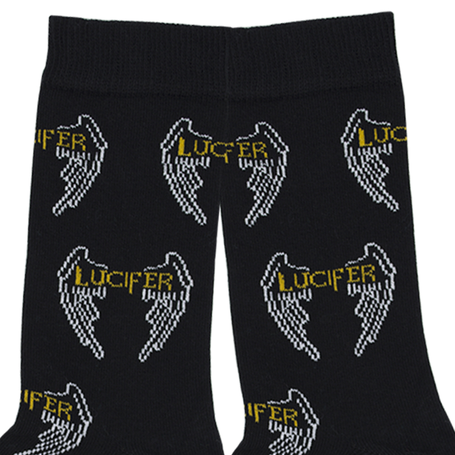 Шкарпетки Lucifer (wings) чорні р.36-44 (tr)   Шкарпетки це універсальний подарунок для себе, дівчини, хлопця або дитини.   Яскравий малюнок і комфортний матеріал говорять самі за себе!   Склад: 80% Котон, 17% Поліамід, 3% Еластан.