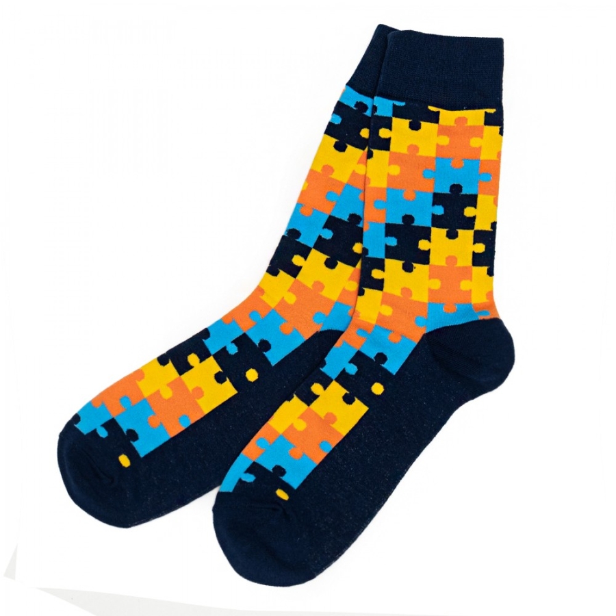 Шкарпетки Пазли (р.40-46) Шкарпетки це універсальний подарунок для себе, дівчини, хлопця або дитини.   Яскравий малюнок і комфортний матеріал говорить сам за себе!   Склад: Бавовна, Еластан.