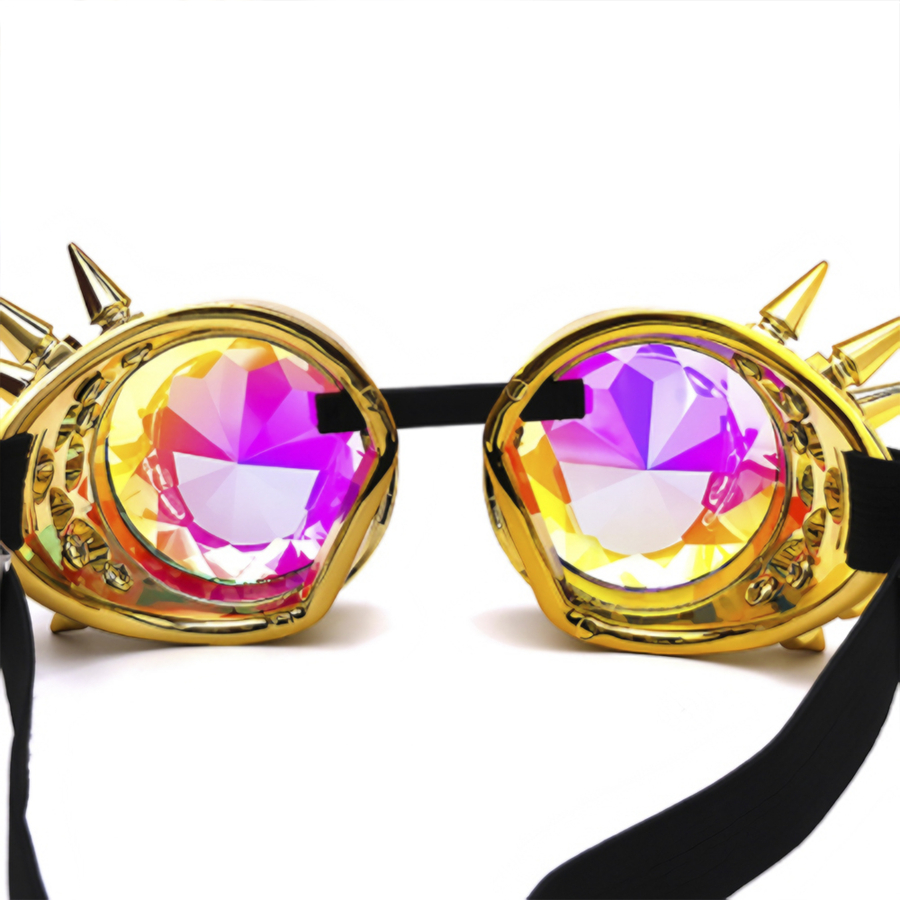 Окуляри стімпанк колір бензин з шипами і ефектом калейдоскоп (SPG-008)   Окуляри стімпанк-стильний аксесуар який підкреслить ваш образ.   Лінзи особливої форми, дивлячись через які можна насолоджуватися екзотичними візуальними ефектами.   Виконані з твердого пластику з акриловими окулярами. Окуляри обладнані м'яким прогумованим регульованим ремінцем який надійно буде тримати окуляри на голові. Також корпус окулярів прикрашений шипами які надають особливий шарм даного стилю.   Матеріал корпусу: пластик   Окуляр: акрилове скло з ефектом калейдоскопа. Регульований тягнеться ремінець. У комплекті м'який чохол.
