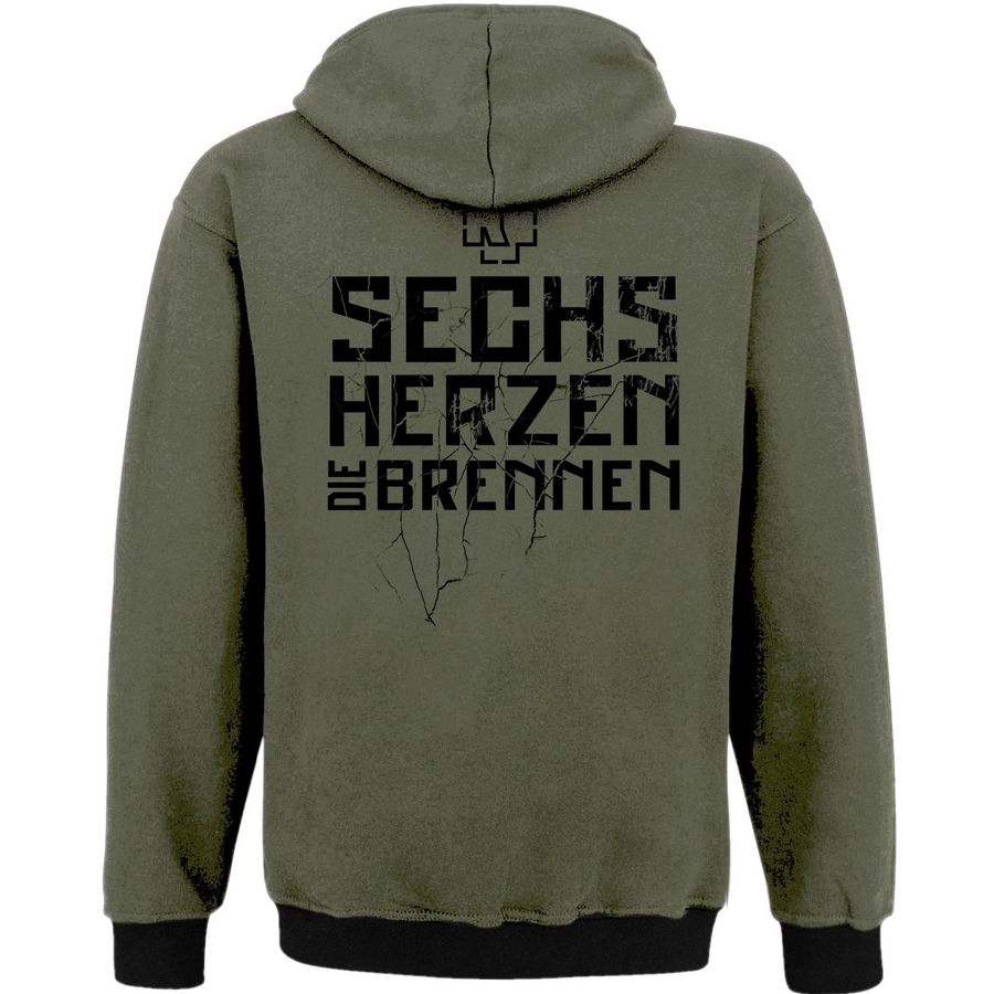 Оливкове худі Rammstein "Haifisch" на блискавці виробництво: Rockway; тканина: 80% - бавовна, 20% - поліестер; малюнок нанесений методом шовкотрафаретного друку (не тріскається, не псується внаслідок прання, не вигорає); малюнок: фарба пластизольна виробництва EU. Прати при температурі не вище 30°