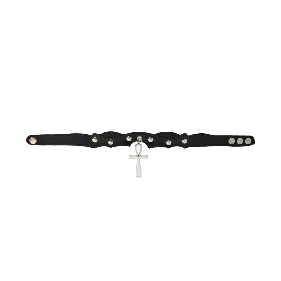 Шкіряний чокер (ar-002) з кулоном Анкх (сталевий колір)