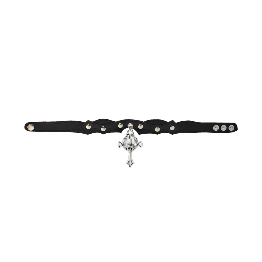 Шкіряний чокер (ar-002) з кулоном Череп з крилами на хресте