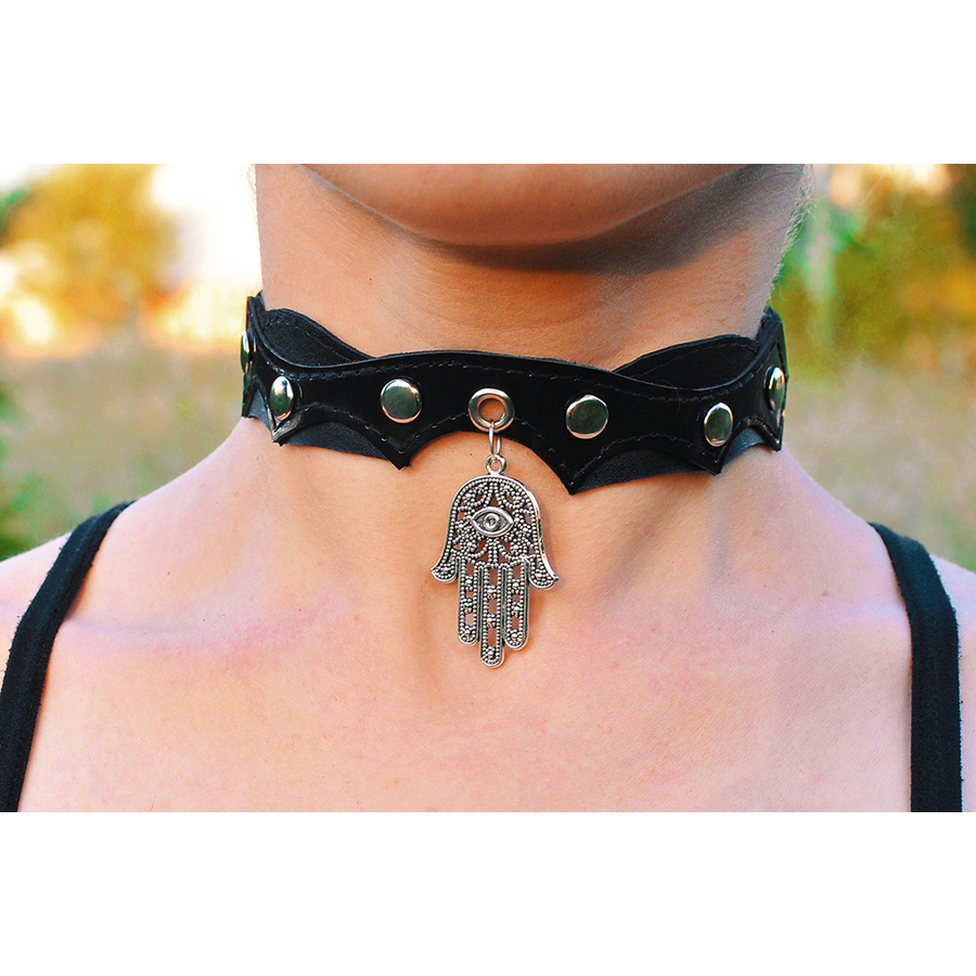 Шкіряний чокер (ar-002) з кулоном Рука Бога (Хамса)