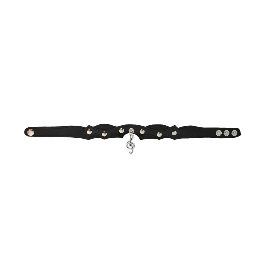 Шкіряний чокер (ar-002) з кулоном Скрипковий ключ з візерунком (срібний колір)
