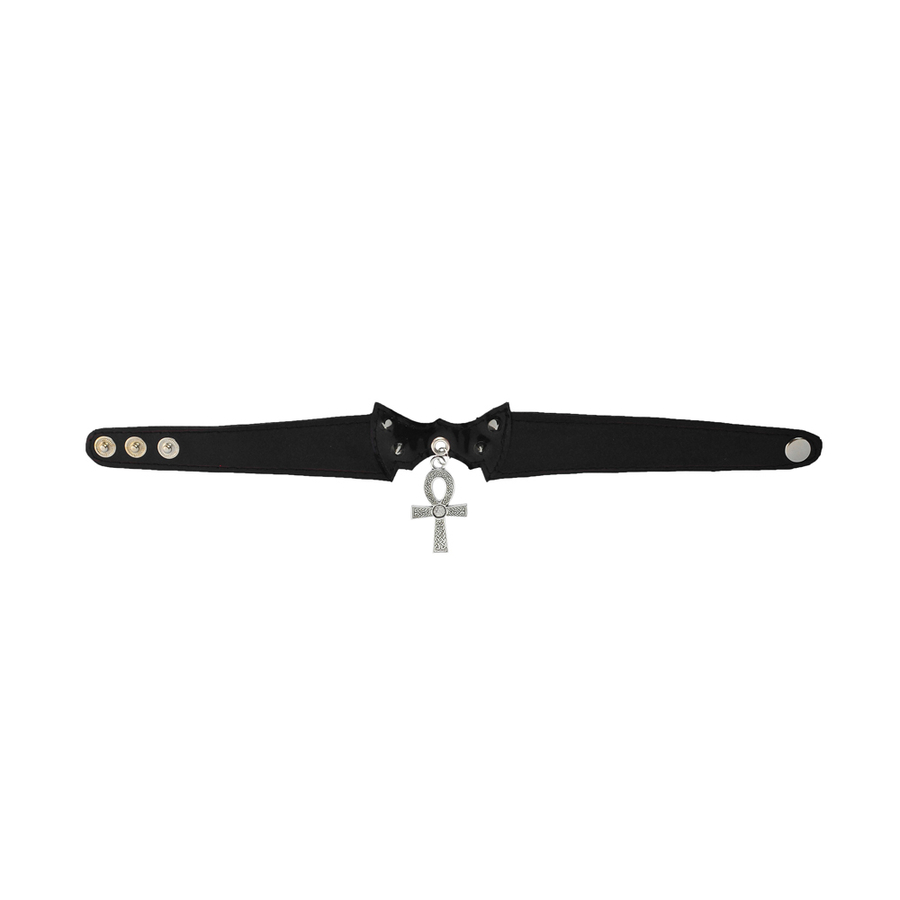 Шкіряний чокер (ar-004) з кулоном Анкх з плетеним візерунком