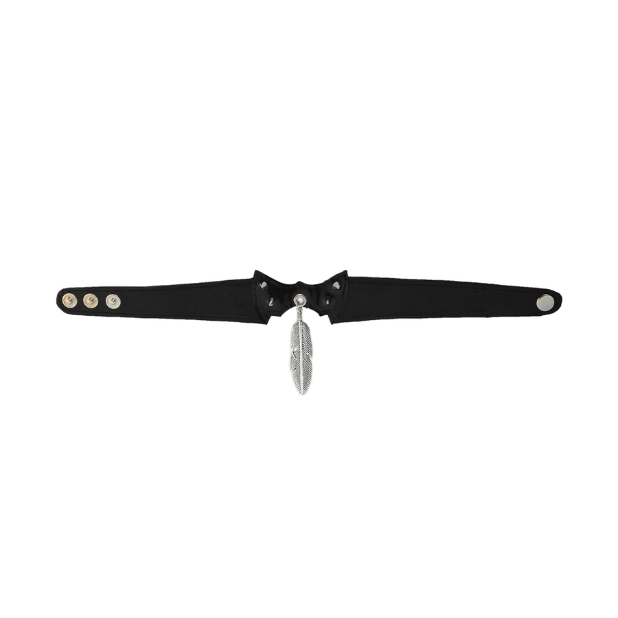 Шкіряний чокер (ar-004) з кулоном Перо велике двостороннє (колір сталевий)