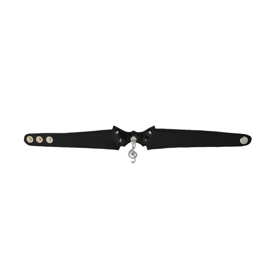 Шкіряний чокер (ar-004) з кулоном Скрипковий ключ з візерунком (срібний колір)