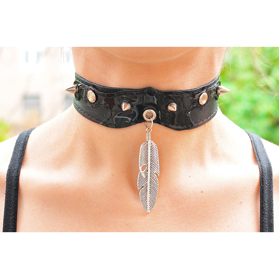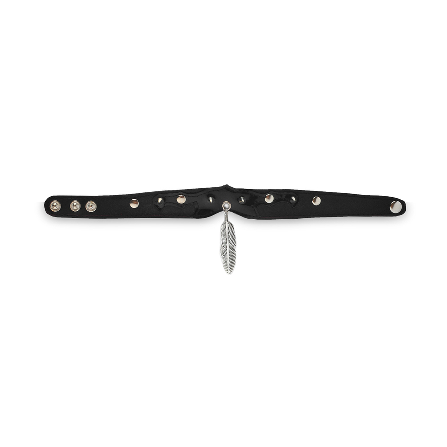 Шкіряний чокер (ar-006) з кулоном Перо велике двостороннє (колір сталевий)