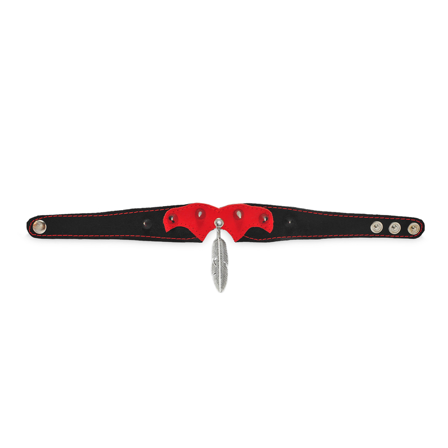 Шкіряний чокер (ar-007) з кулоном Перо велике двостороннє (колір сталевий)