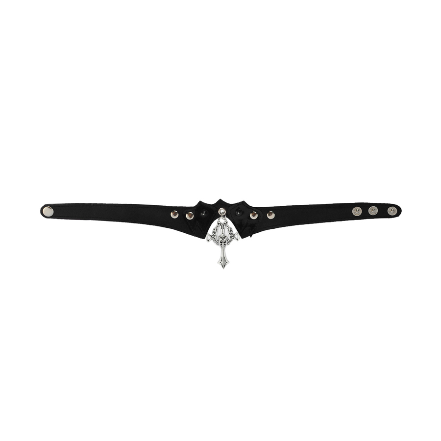 Шкіряний чокер (ar-008) з кулоном Череп з крилами на хресте