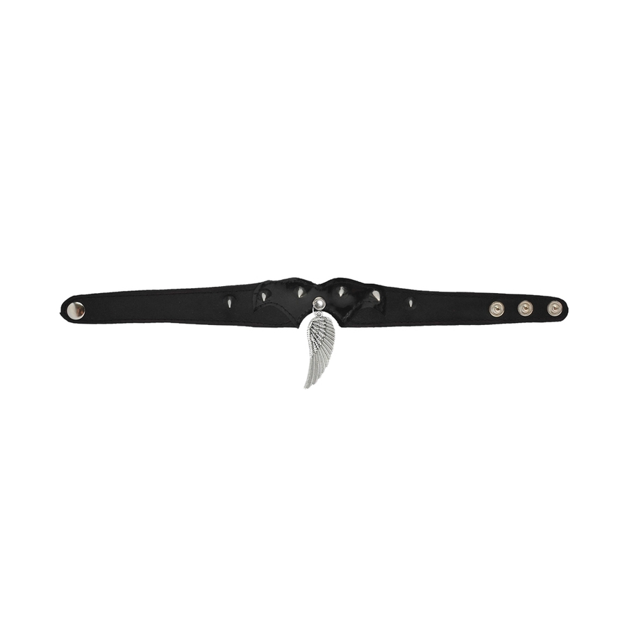Шкіряний чокер (ar-008) з кулоном Крило велике двостороннє (колір сталевий)