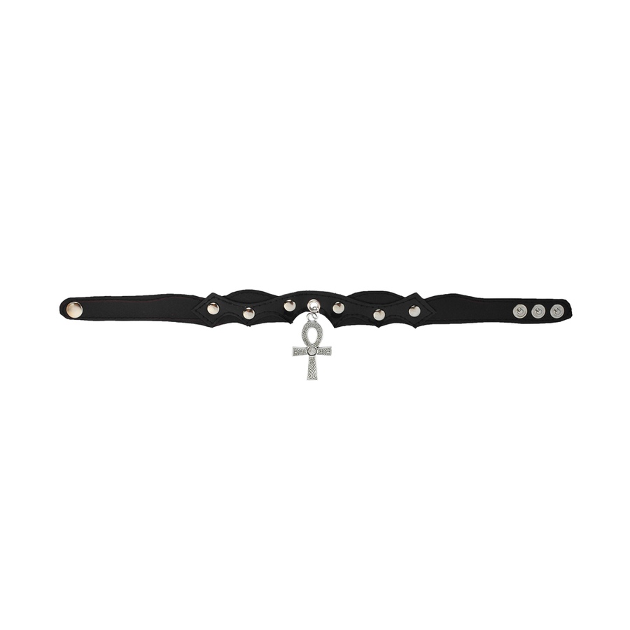 Шкіряний чокер (ar-009) з кулоном Анкх з плетеним візерунком