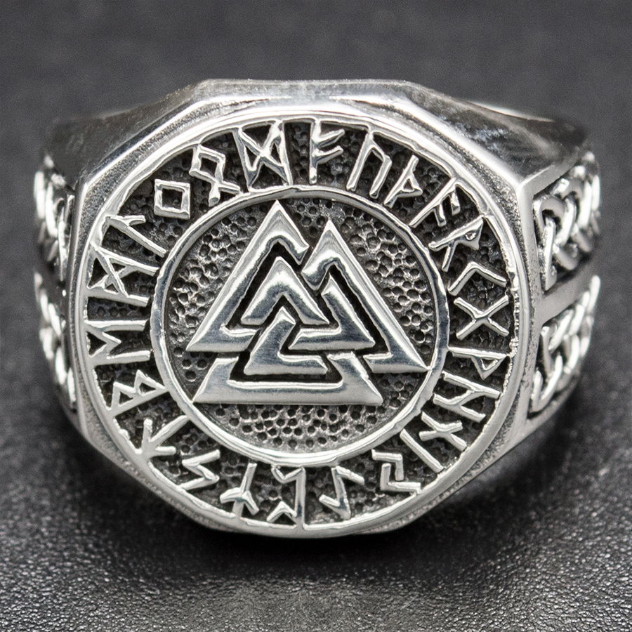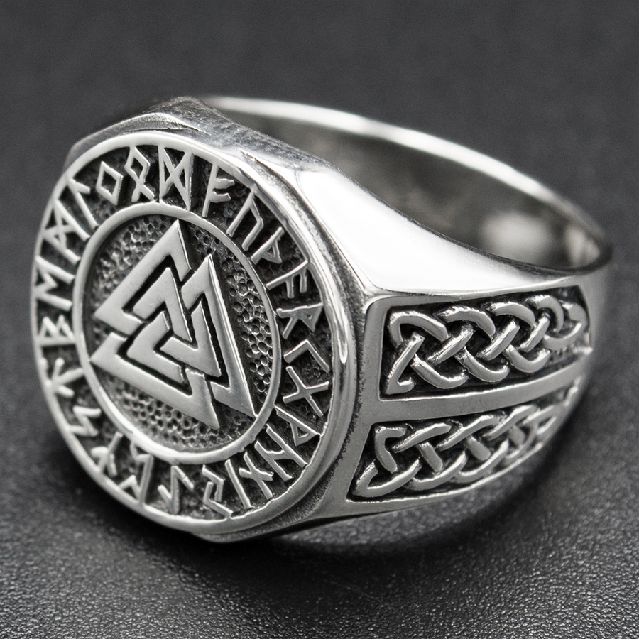 Перстень Валкнут в рунічному колі (срібло, 925 проба) (thrg-004)