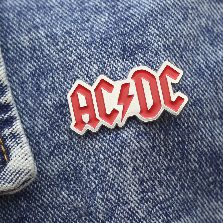 Пін AC/DC (logo) (pncn-015) виготовлений із високоякісного цинкового сплаву. Розміри: висота 17 мм, ширина 35 мм.