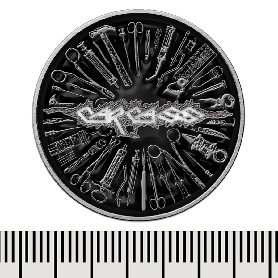 Пін CARCASS - TOOLS (pnol-060) Цей товар є офіційним ліцензованим мерчем (Officially Licensed). Пін виготовлений із металевого сплаву. Завдяки двом голкам з тильного боку, ви зможете надійно його закріпити, при цьому він не перекручуватиметься. Кожен пін запакований у блістер, має презентабельний вигляд, це ідеальний подарунок для справжніх фанатів гурту. Зроблено у Великій Британії