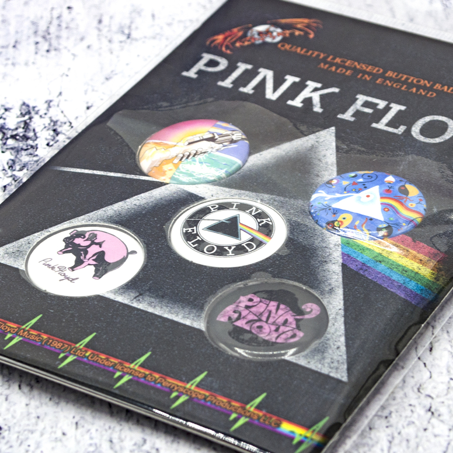 Подарунковий набір значків PINK FLOYD - PRISM (iol-082). Цей товар є офіційним ліцензованим мерчем (Officially Licensed). Значки з якісним деталізованим зображенням, на пластиковій основі, обладнані надійною металевою шпилькою з тильного боку. На кожному значку на зворотному боці вказано номер партії. Кожен набір із п'яти значків упакований у блістер на картонній основі зі стилізованим зображенням гурту чи альбому, якому присвячений конкретний набір, має презентабельний вигляд, це ідеальний подарунок для справжніх фанатів гурту. Зроблено у Англії.