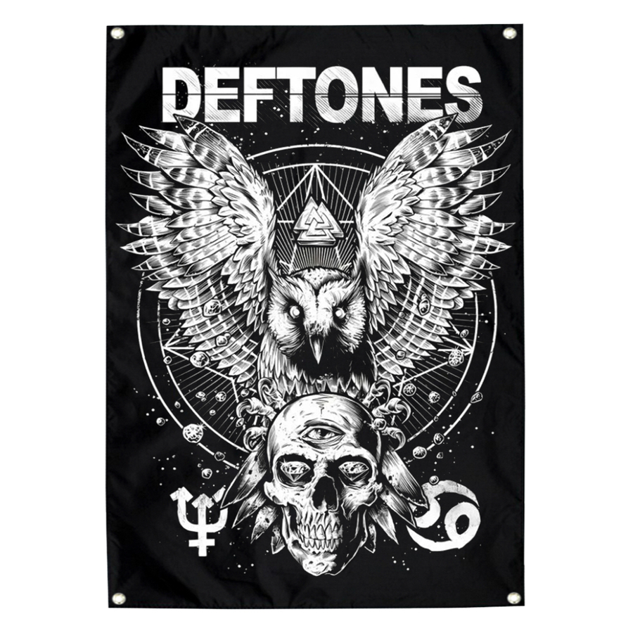 Прапор Deftones (Owl and Skull) sfc-069 Тканина: 100% поліестер; малюнок нанесений методом термохімічного сублімаційного друку; розмір: 60х90 см