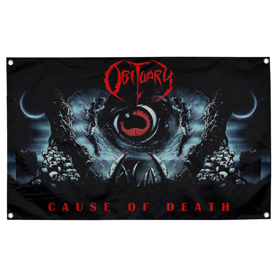 Прапор Obituary "Cause of Death" sfc-032 Тканина: 100% поліестер; малюнок нанесений методом термохімічного сублімаційного друку; розмір: 60х90 см.