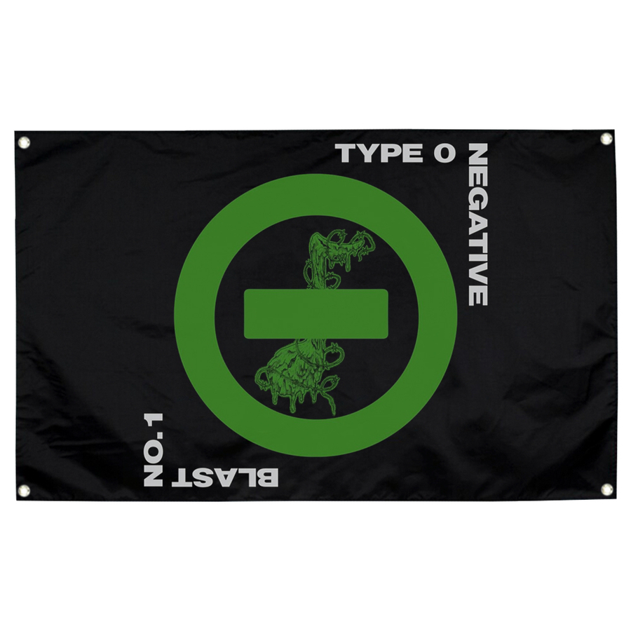 Прапор Type O Negative (Negative symbol) sfc-055 Тканина: 100% поліестер; малюнок нанесений методом термохімічного сублімаційного друку; розмір: 60х90 см