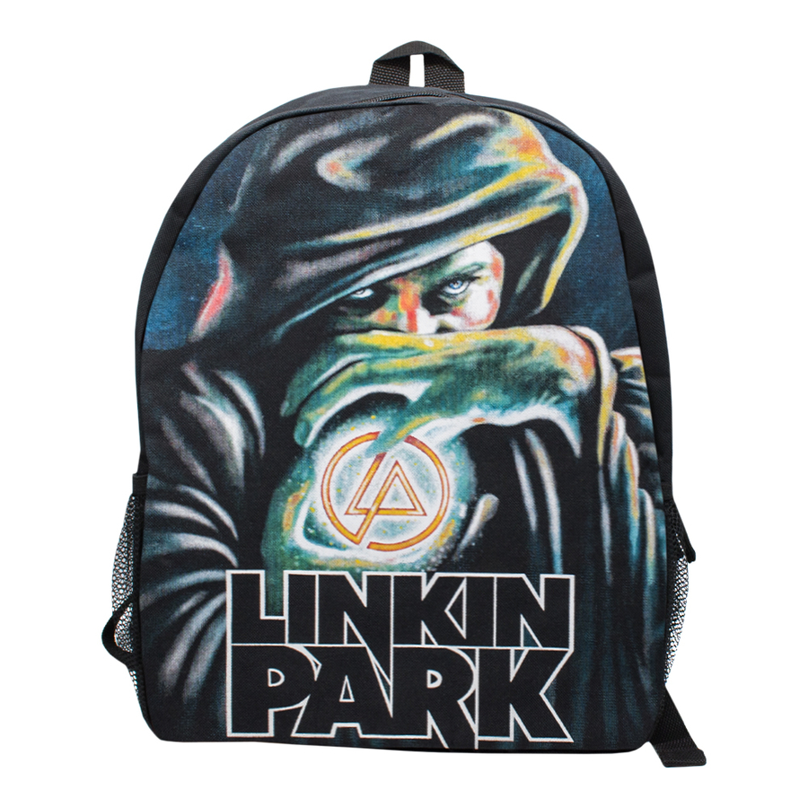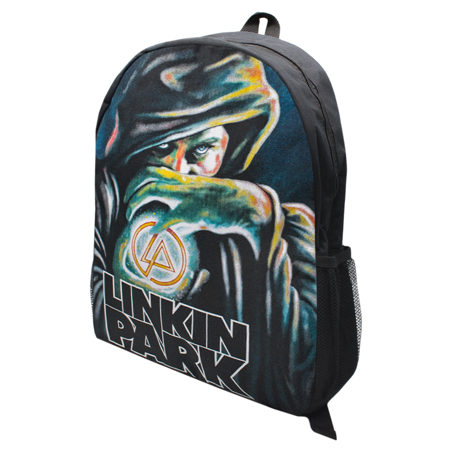 Рюкзак Linkin Park (magical logo) розмір M (th). Оригінальний міський рюкзак виконаний із міцного котону, усередині вологозахисна підкладка. Об'ємне відділення має також дві кишеньки на задній внутрішній стінці. З боків зовні розташовані сітчасті кишені. Лямки надійно пришиті до рюкзака та додатково прошиті стрічкою для більшої міцності. Зображення нанесене методом шовкотрафаретного друку, не стирається та не вигоряє. Прати у холодній воді, не гладити. У сушильній машині сушити за низької температури. Виробництво Таїланд.