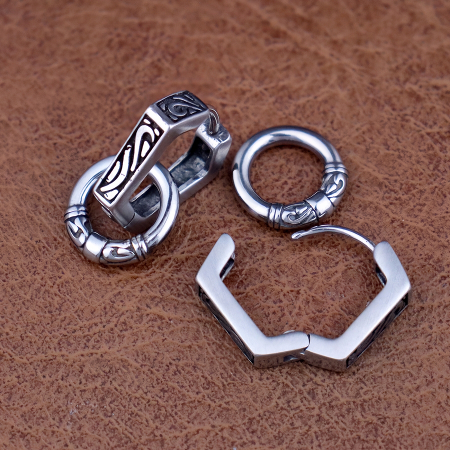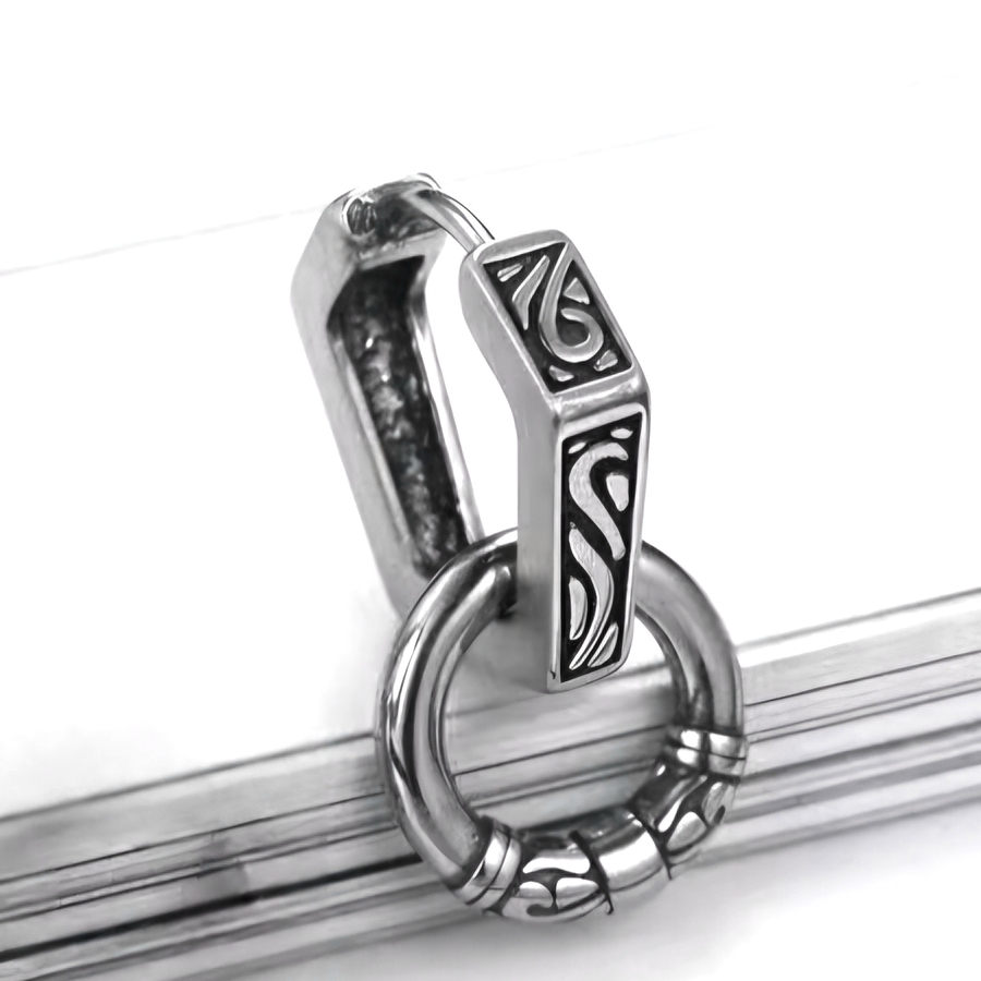 Сережка Гексагон з кільцем та візерунками (ea-160) Медична сталь. Висота 16 мм, ширина 18 мм, товщина 3 мм, діаметр кільця 11 мм, стрижень 1,2 мм