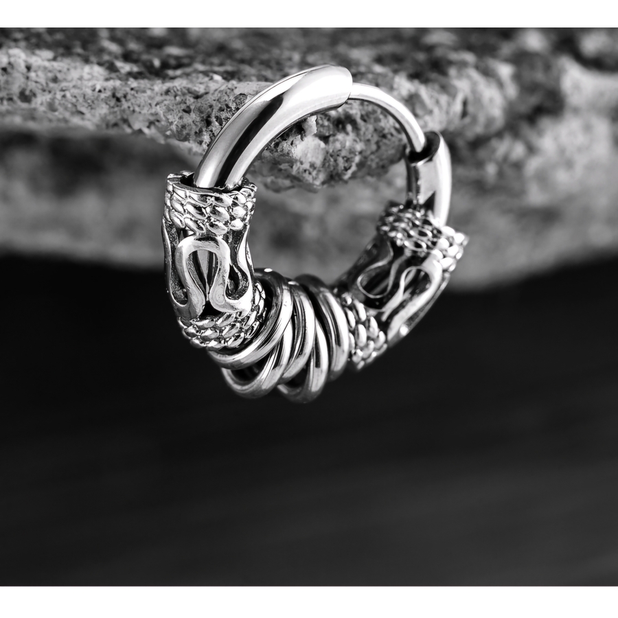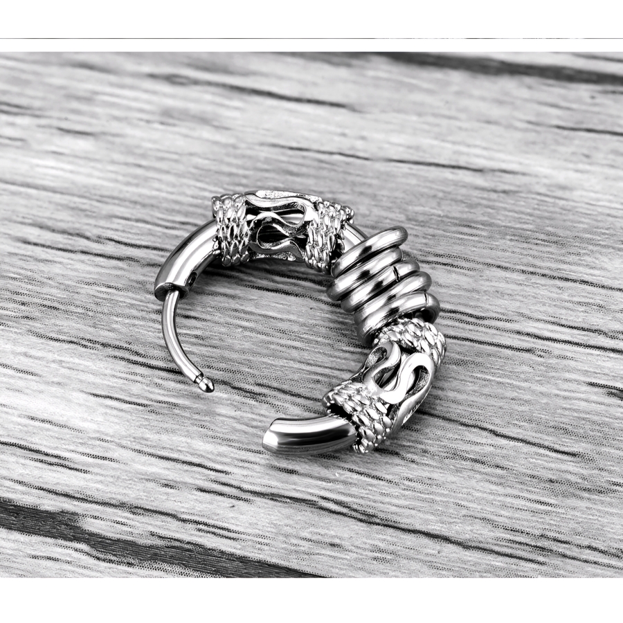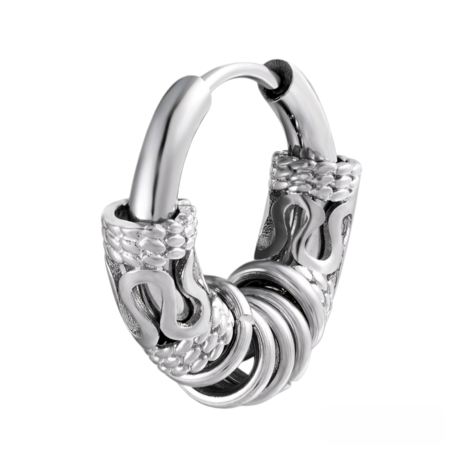 Сережка-кільце хард обманка з кільцями та візерунком (хір.сталь, сталевий) (ea-087)