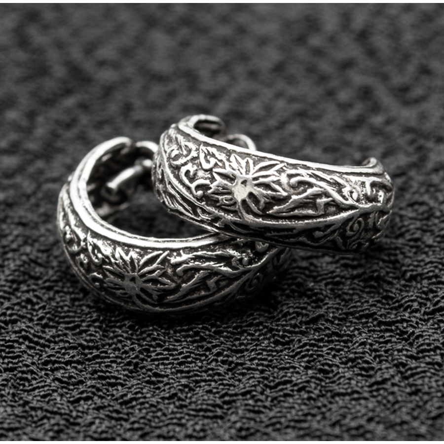 Сережка, кільце піратське з візерунком (діаметр 15 мм, ширина 6 мм, срібло 925 проба) (eas-159)