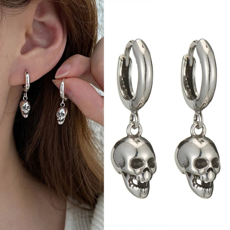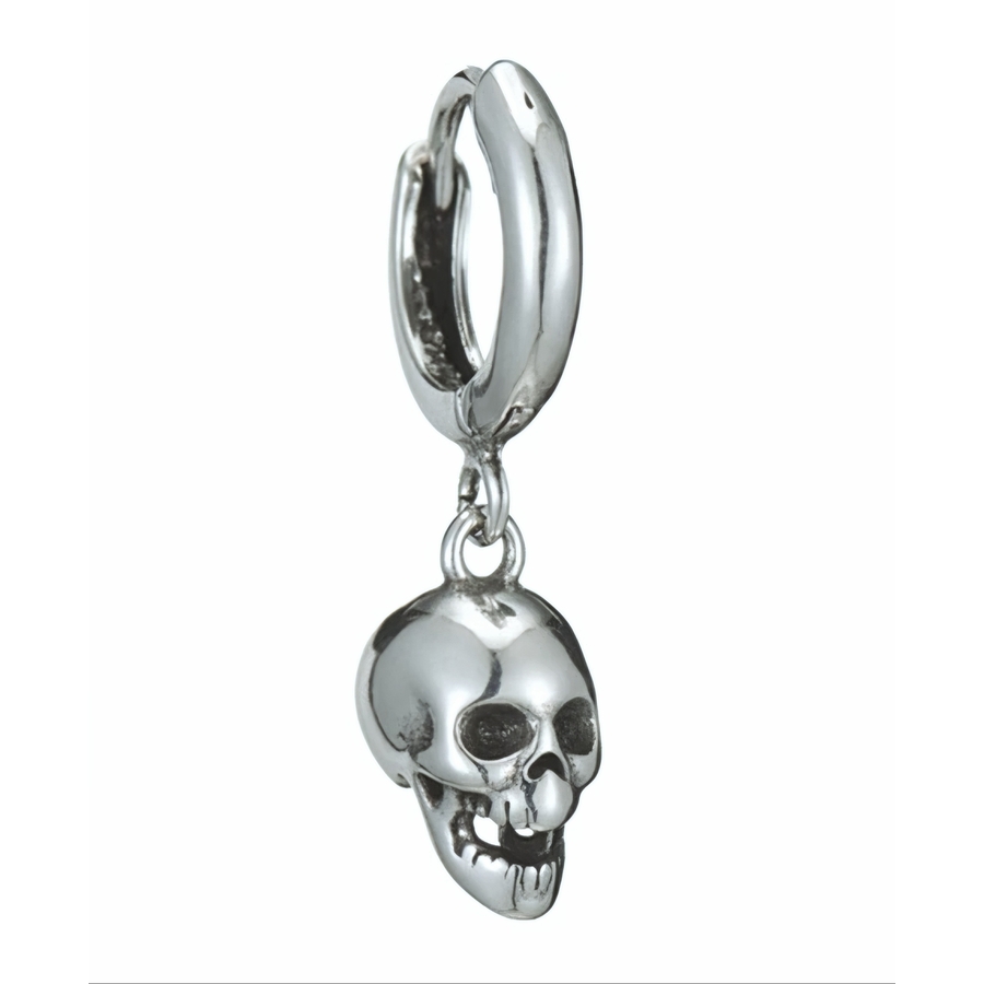 Сережка-кільце з підвіскою Череп (ea-157) Внутрішній діаметр 10 мм, зовнішній діаметр 14 мм, товщина 2,2 мм, товщина стрижня 1 мм. Матеріал медична сталь (не іржавіє, не темніє) Ціну вказано за одиницю товару