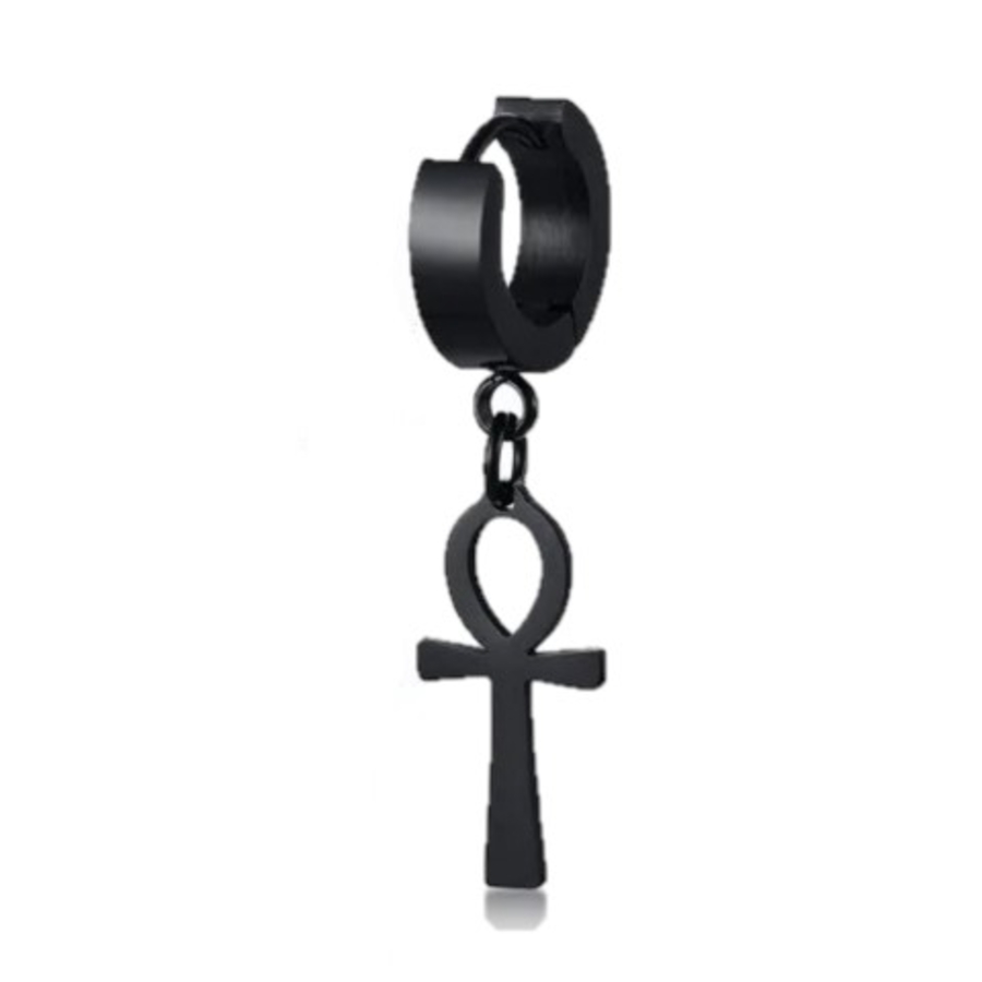Сережка з Анкхом (титан, чорний) ea-101 Діаметр 13 мм, ширина 4 мм, висота підвіски 17 мм