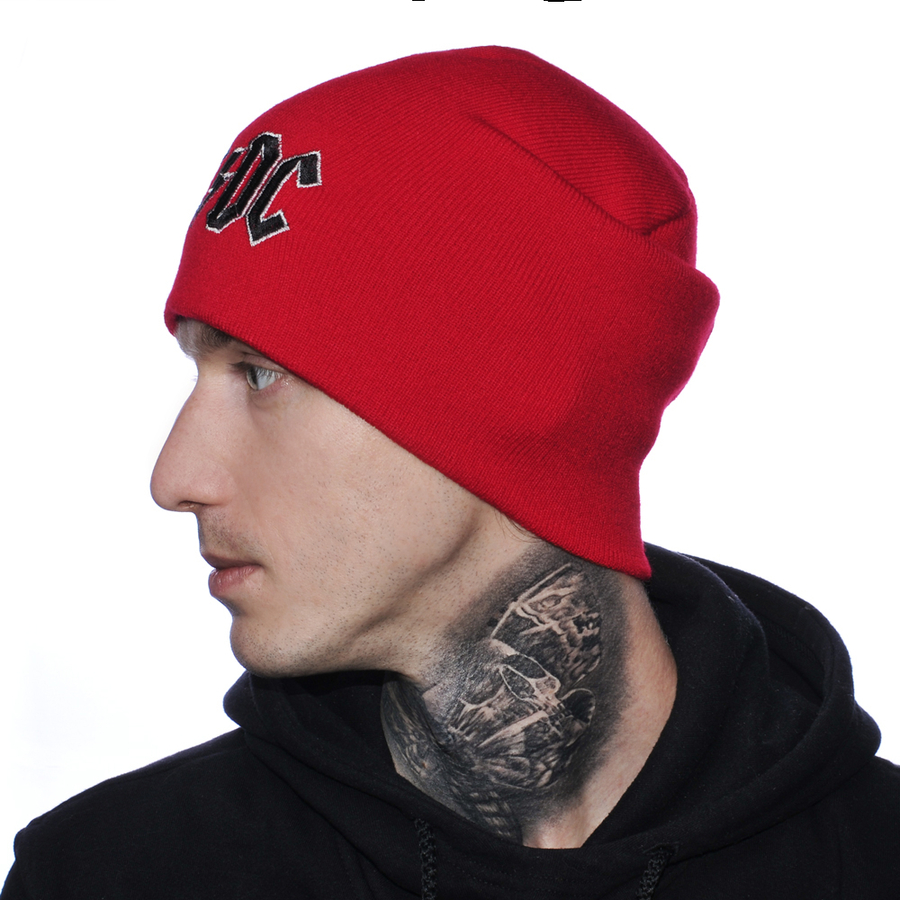 Двошарова безрозмірна Шапка з вишивкою AC/DC (logo) червона