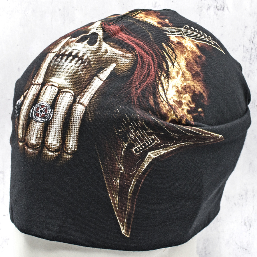 Високоякісна Шапка Череп Metalhead (гітари навхрест) (hth-002) з яскравим принтом для справжніх фанатів Rock та Metal музики. Ця шапка ідеально підкреслить Вашу індивідуальність. Матеріал: 95% Хлопок, 5% Спандекс. Високоякісний деталізований шовкотрафаретний друк. Виробник Rock Eagle