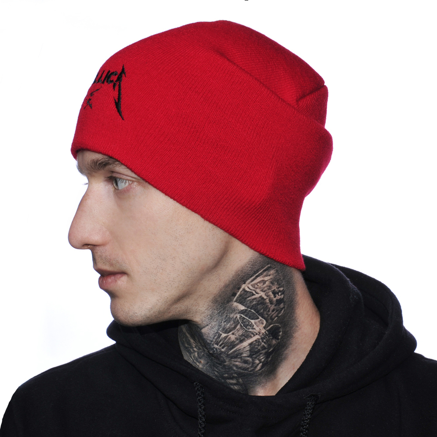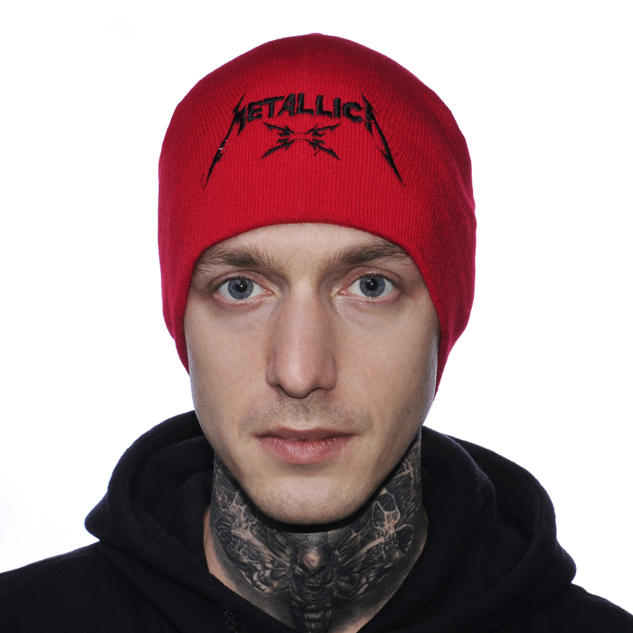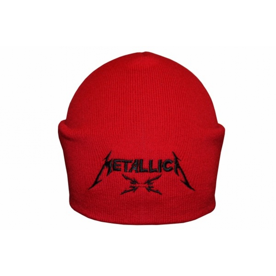 Двошарова безрозмірна Шапка з вишивкою Metallica червона