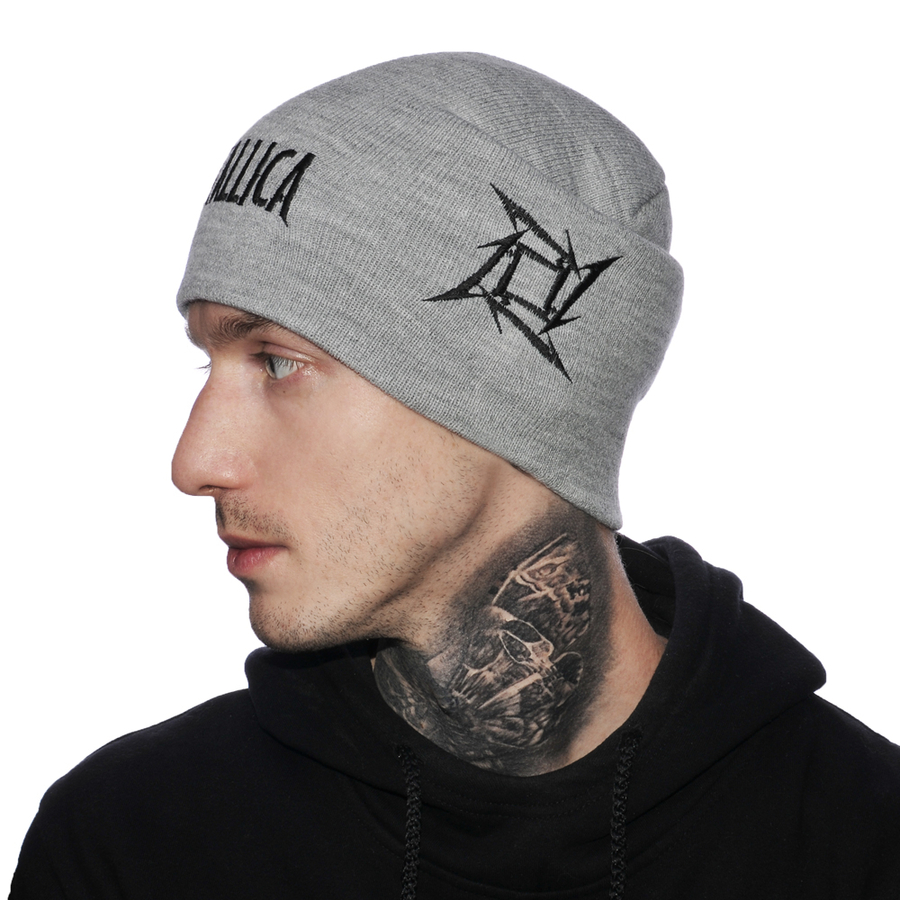 Двошарова безрозмірна Шапка з вишивкою Metallica сіра
