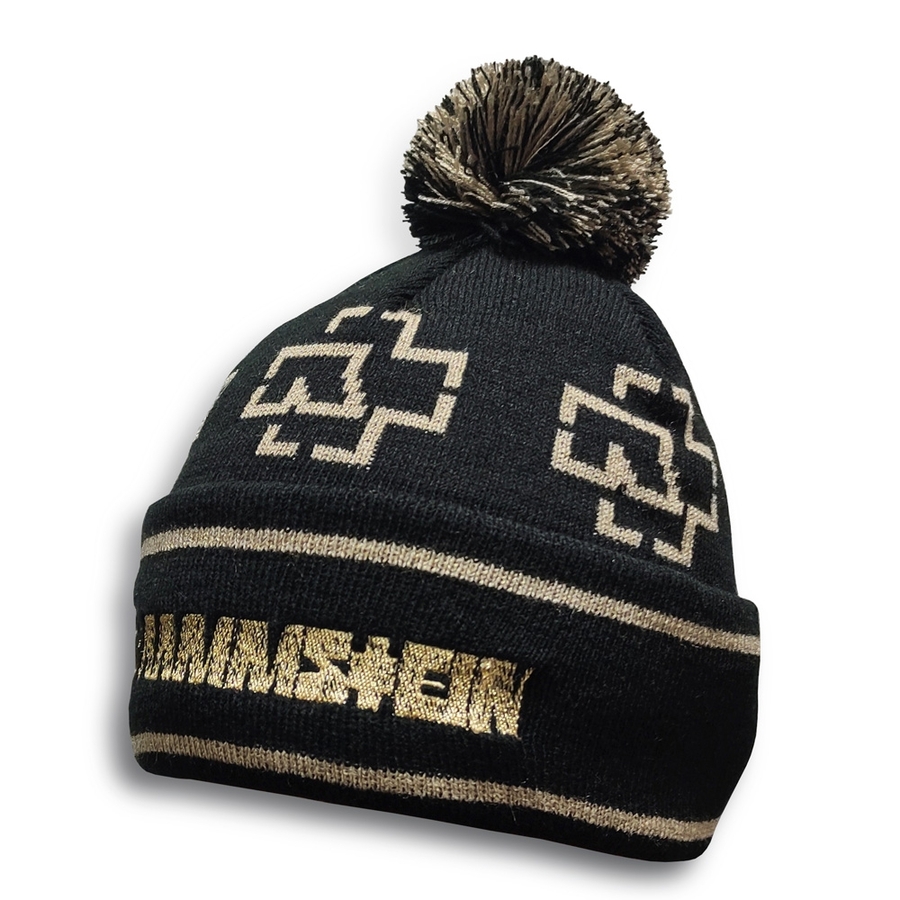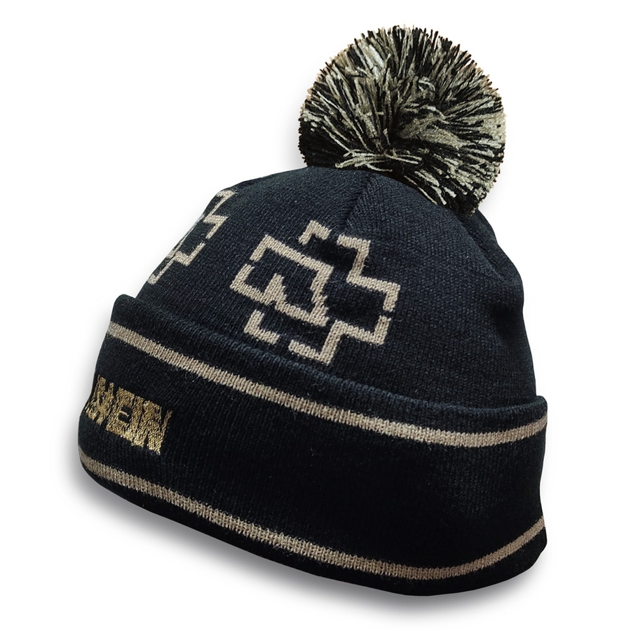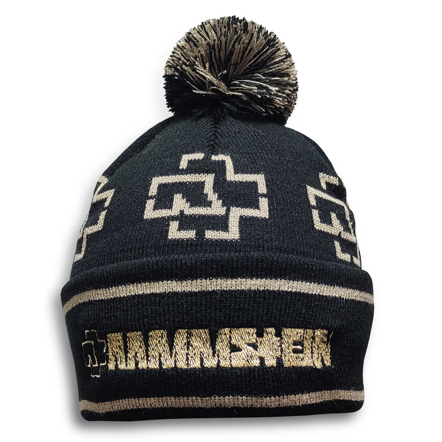 Тепла м'яка стильна Шапка Rammstein (logo) з жакардовим візерунком і вишивкою назви групи.