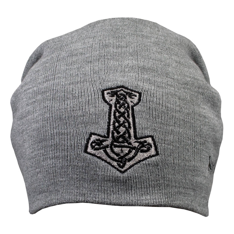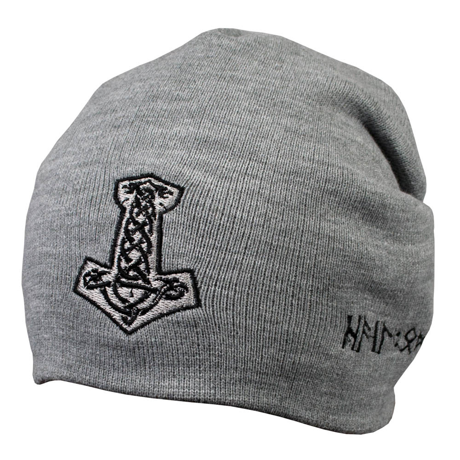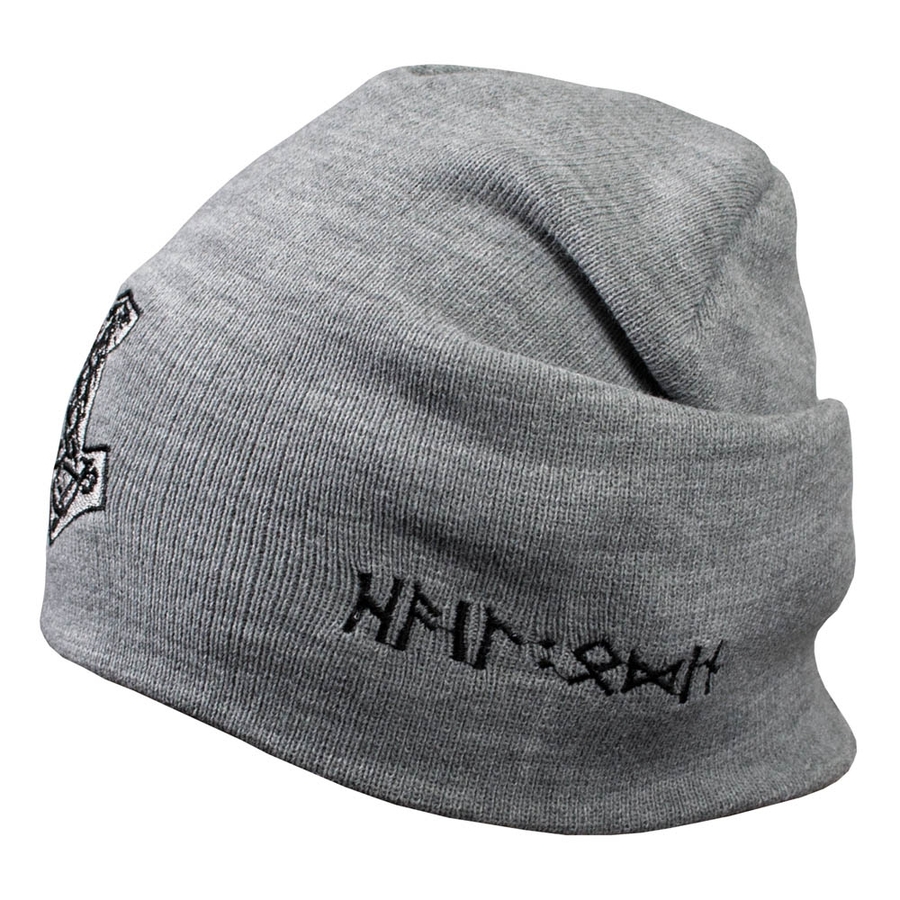 Двошарова безрозмірна Шапка з вишивкою Молот Тора (руни) сіра