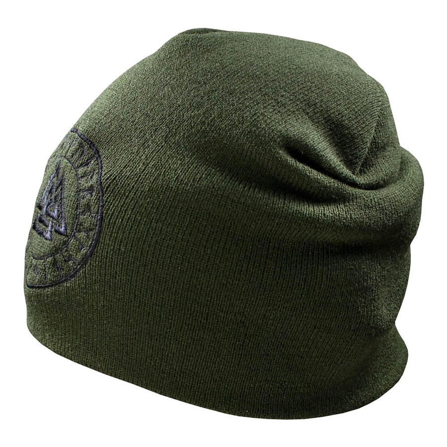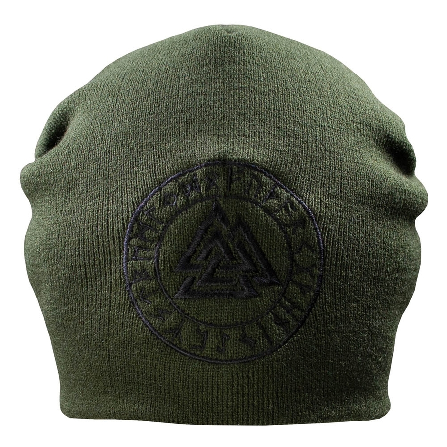 Двошарова безрозмірна Шапка з вишивкою Валкнут в рунічному колі, оливаСклад: поліакріл.