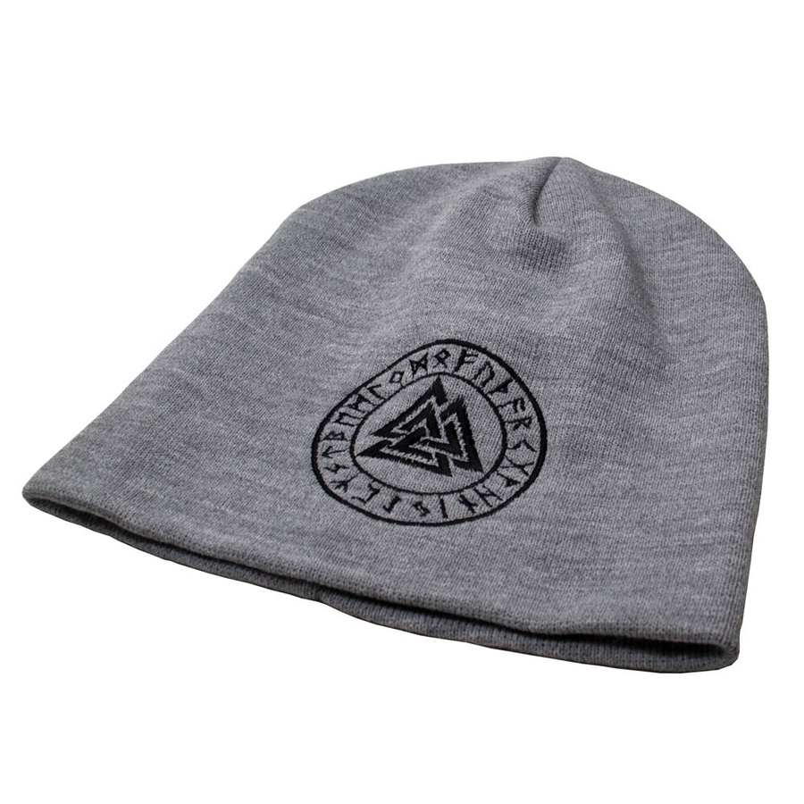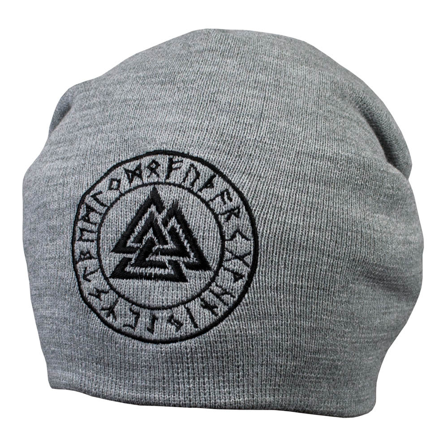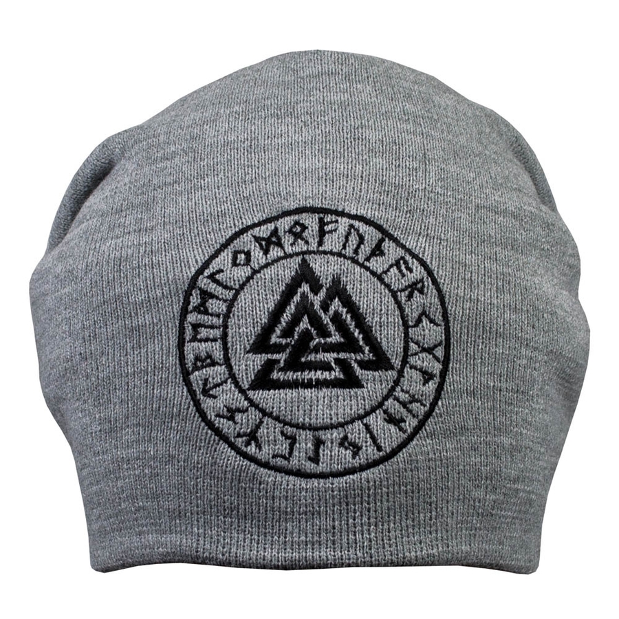 Двошарова безрозмірна Шапка з вишивкою Валкнут в рунічному колі, сіра