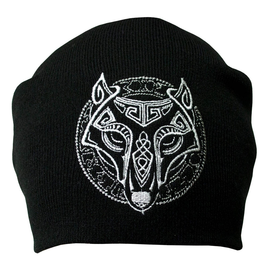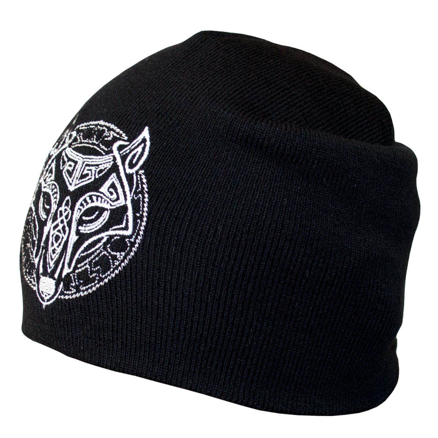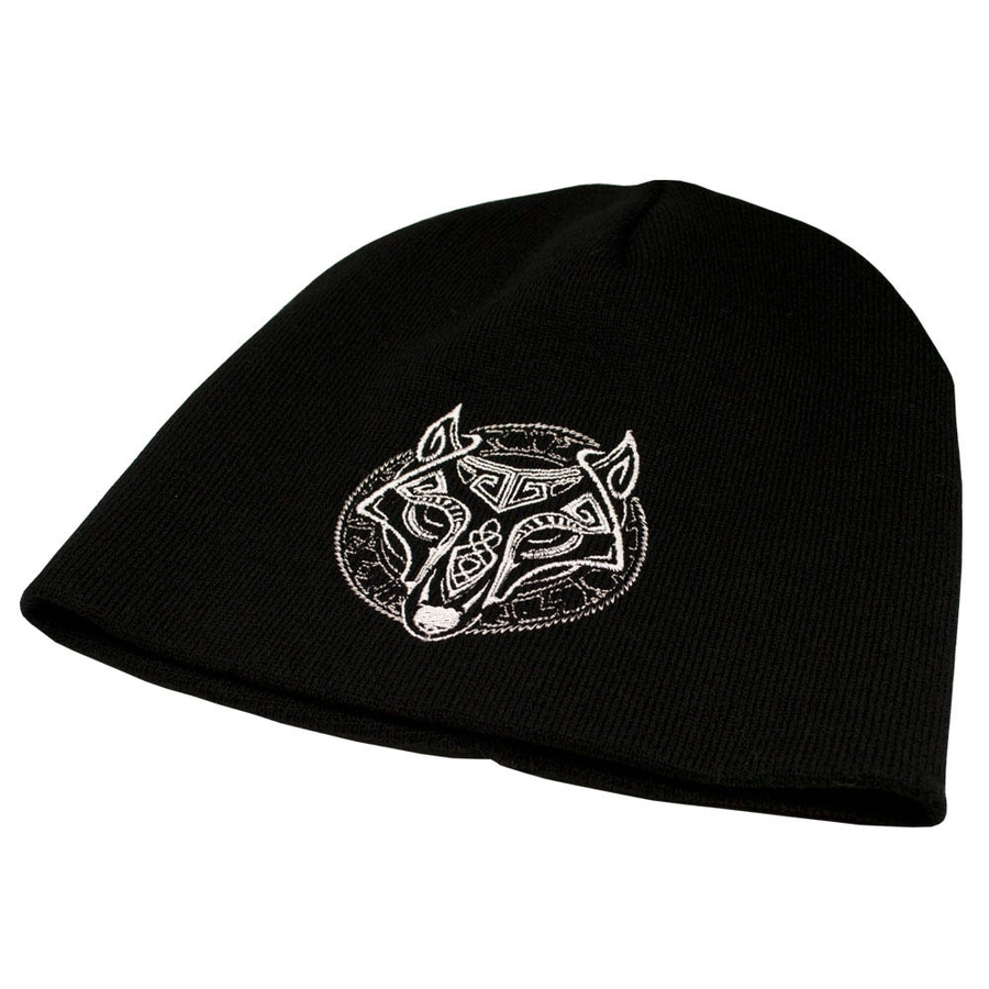 Двошарова безрозмірна Шапка з вишивкою Вовк (Fenrir) чорна