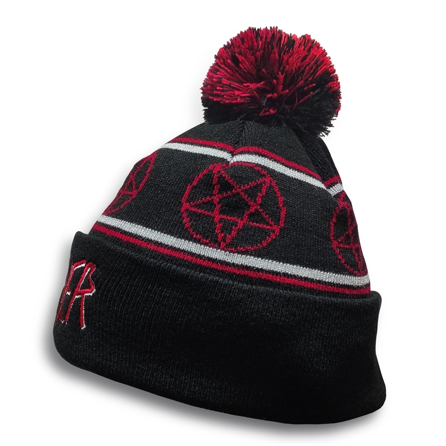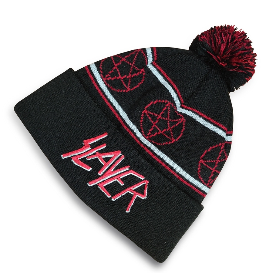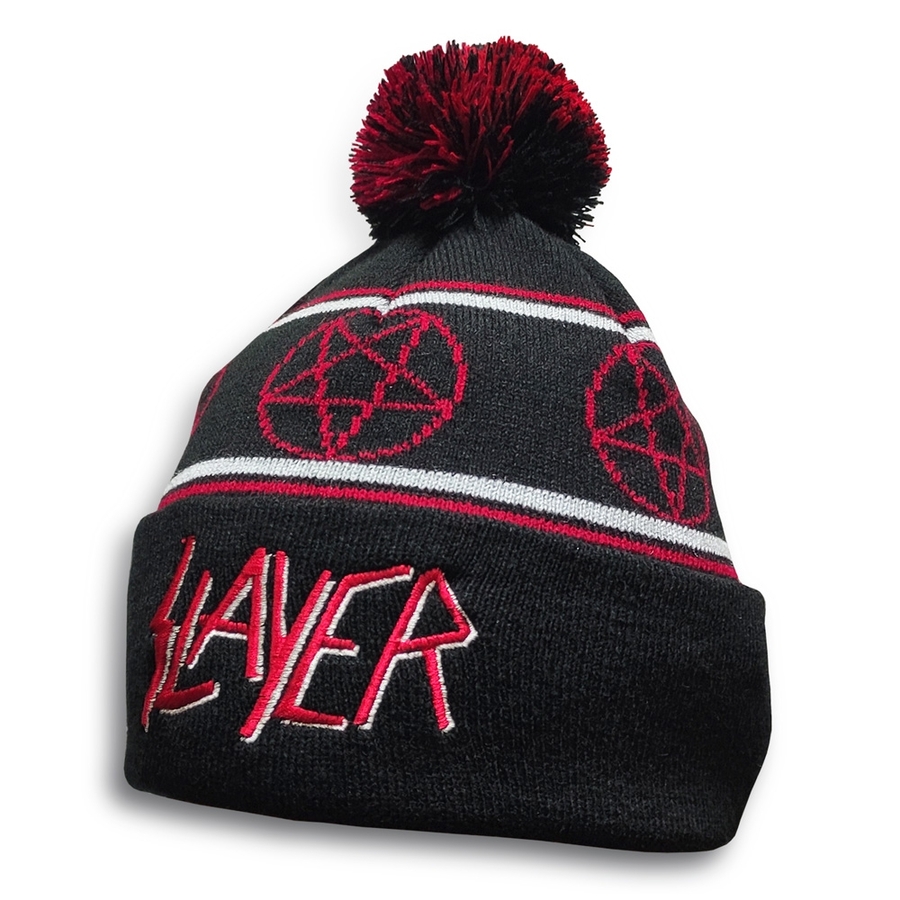 Тепла м'яка стильна Шапка Slayer (пентаграма) з жакардовим візерунком і вишивкою назви групи.