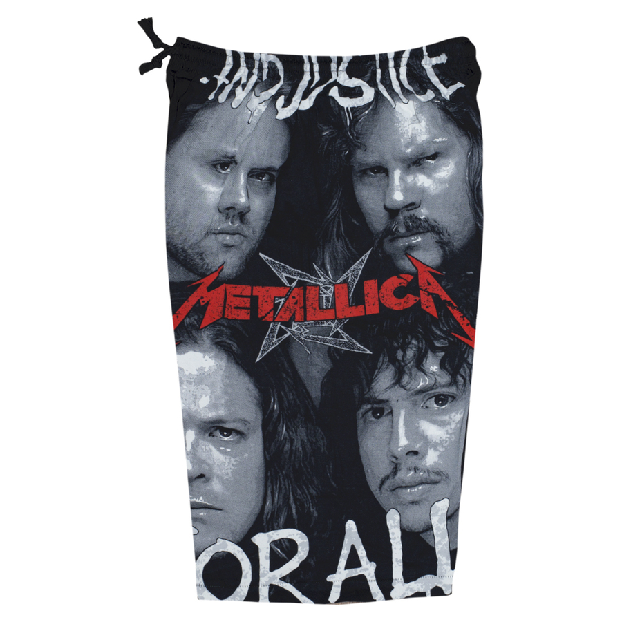 Чорні шорти з великим графічним принтом, присвяченим альбому Metallica "…And Justice for All". На принті зображені учасники гурту James Hetfield, Lars Ulrich, Kirk Hammett, Jason Newsted.Матеріал: 100% бавовна (щільна, але легка тканина), що забезпечує комфорт та довговічність.Друк: Високоякісний шовкотрафаретний друк пластизольними фарбами (high definition), стійкий до вицвітання та розтріскування.Особливості: Якісні шви, тканина не розтягується.Ідеально підходять для шанувальників Metallica та любителів неформального одягу.Прати при температурі не вище 30°