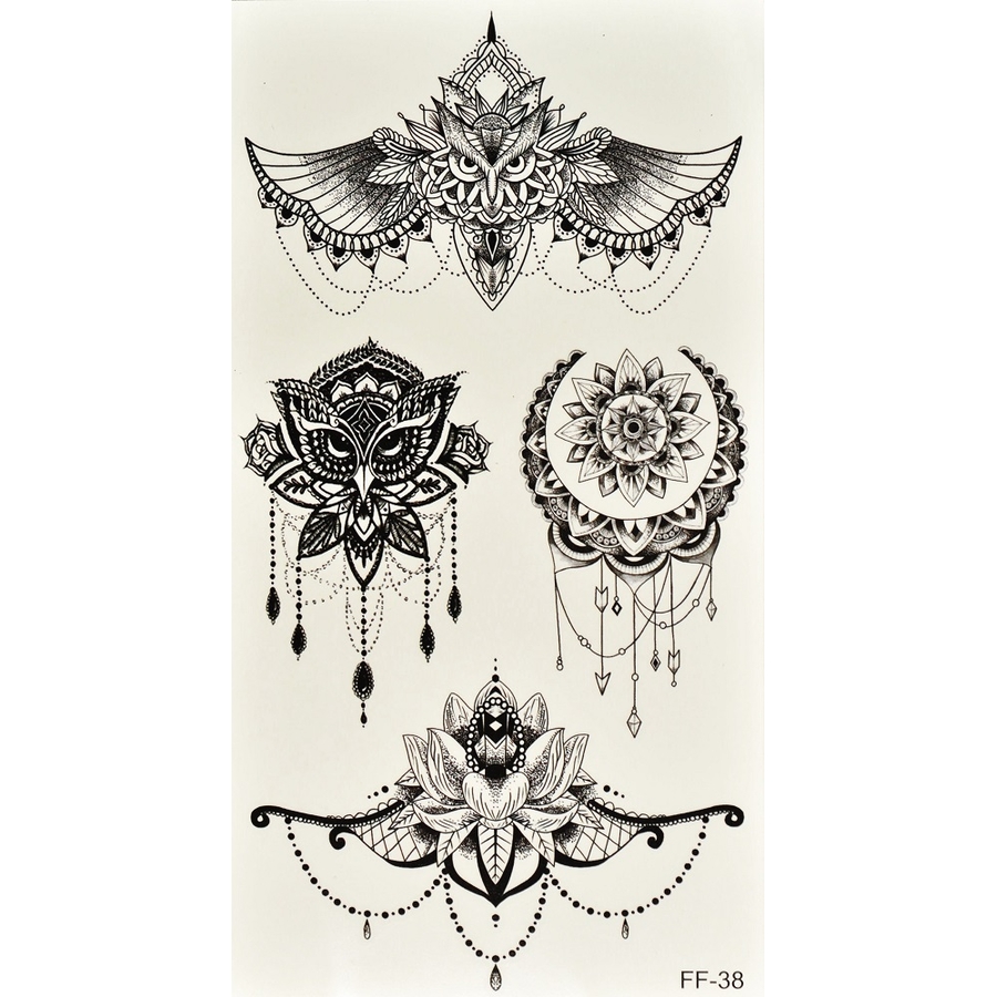Тимчасове тату 3D Сова і Лотос набір (FF-38, 17,5x9,5 см)