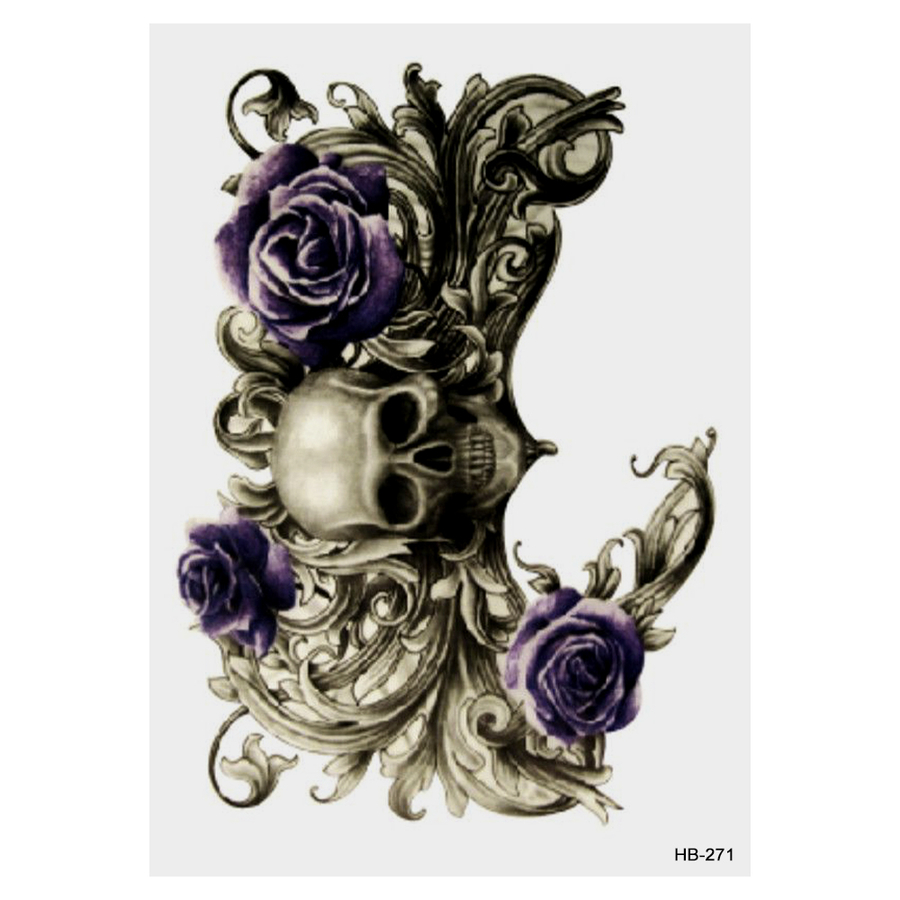Тимчасове тату Череп (три фіолетові троянди) (HB-271, 21x15 см)