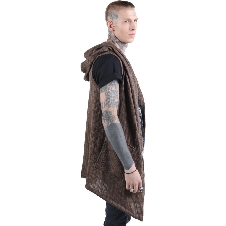 В’язана мантія без рукавів Urbanist (коричнева) із вовни (40%) та акрилу (60%).Подовжений вільний крій. Свобода руху, зручність, 2 великі накладні кишені та капюшон.