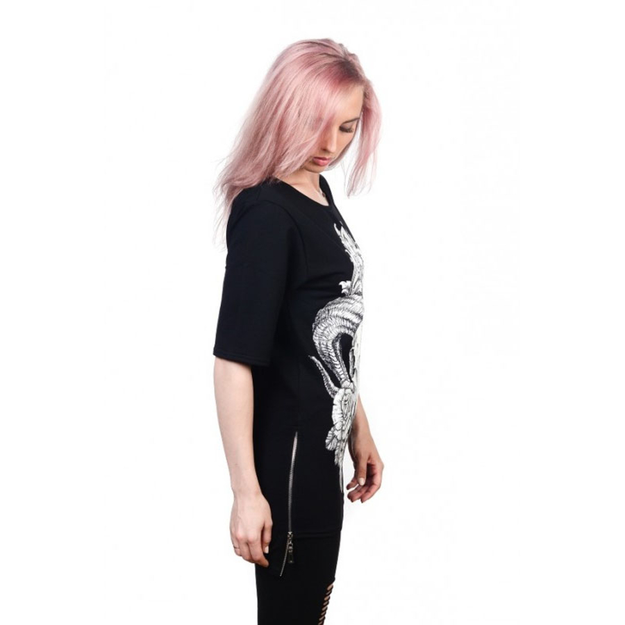 Футболка имеет оригинальный качественный принт, который нанесен методом шелкотрафаретной печати. По бокам футболки функциональная и качественная змейка.